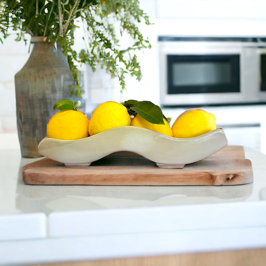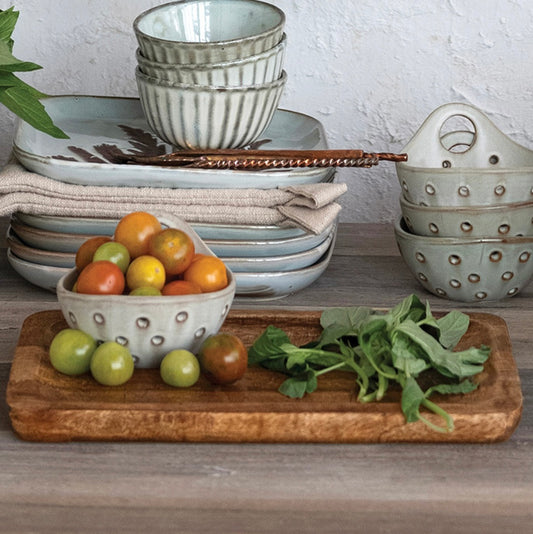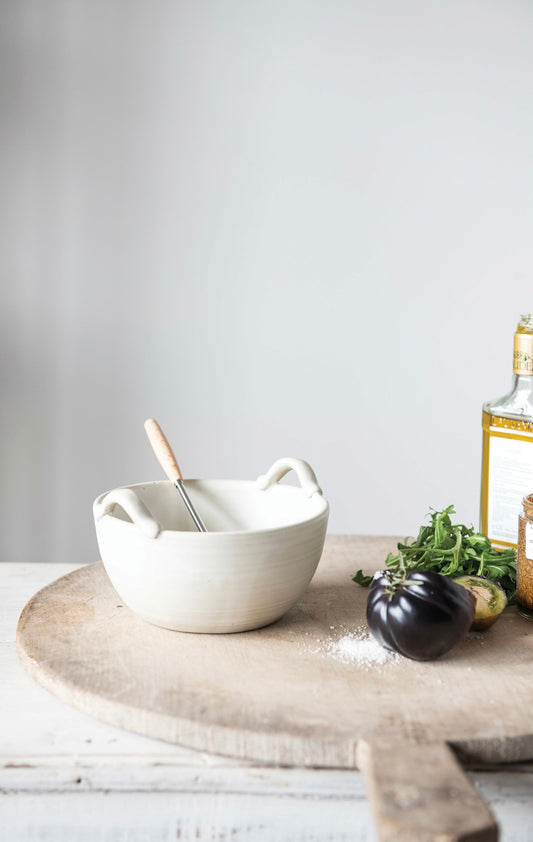 Stoneware Bowl, Wood and Metal Whisk, Set of 2