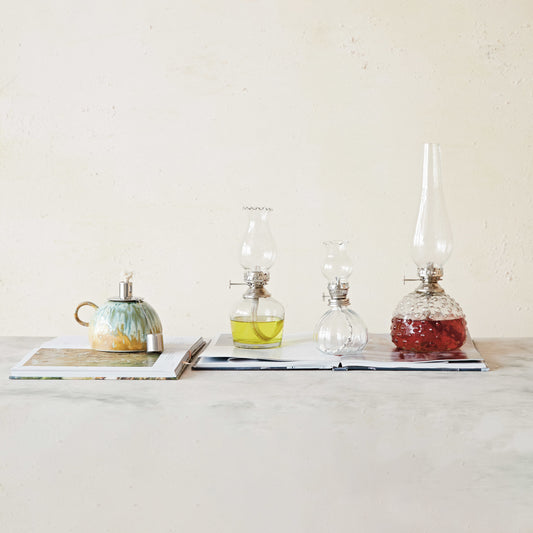 Mini Recycled Glass Oil Lamp w/ Removable Scalloped Glass Top
